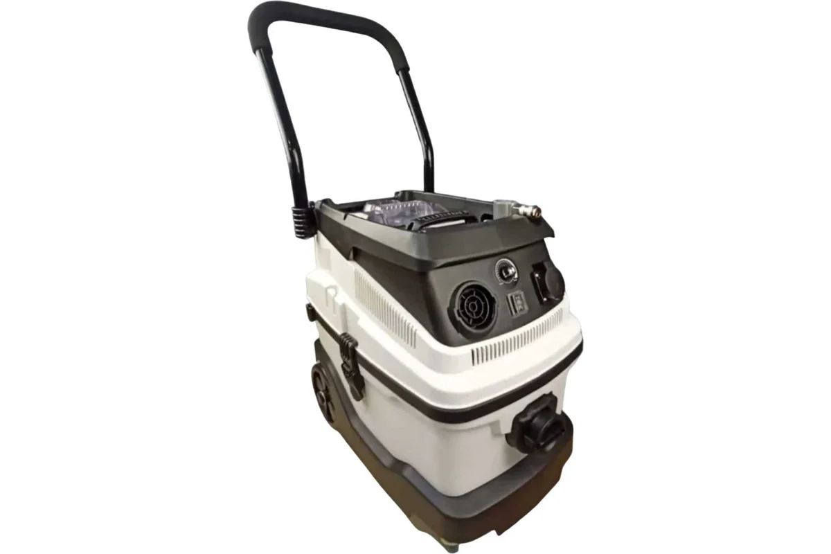 Одно из предназначений строительного пылесоса-эффективное пылеудаление при синхронной работе с электроинструментом (шлифовальные машины, электролобзики, циркулярные пилы, штроборезы и т.п.) Для этого, на корпусе пылесоса предусмотрена электрическая розетка. При подключении к ней электроинструмента, пылесос будет синхронно включаться с подключенным инструментом и выключаться через несколько секунд после выключения инструмента для удаления остатков пыли из отводящего шланга.