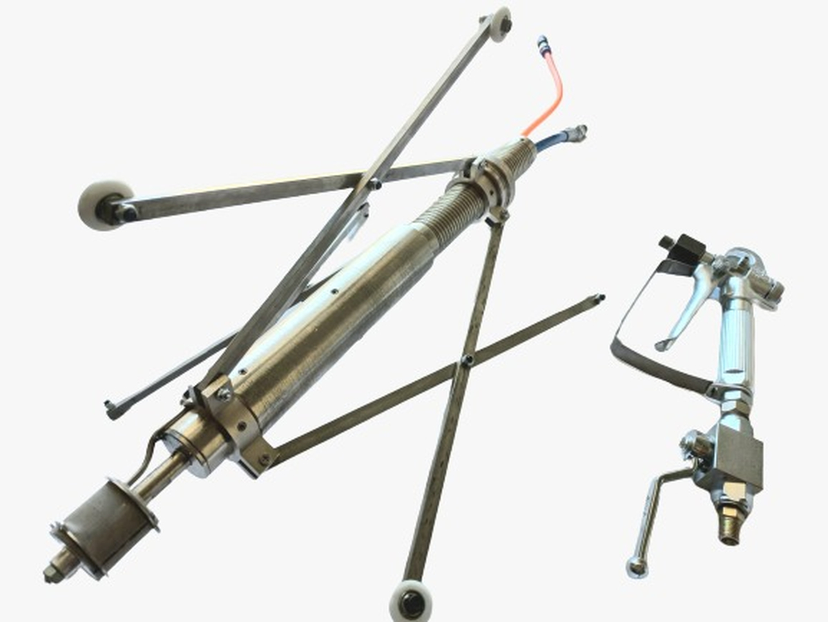 Оборудование для нанесения покрытий на внутренние стенки трубы типа NKP-2 вместе с безвоздушным окрасочным аппаратом может использоваться для распыления внутри различных труб, внутренний диаметр которых составляет Ø = 100 – 700 мм.